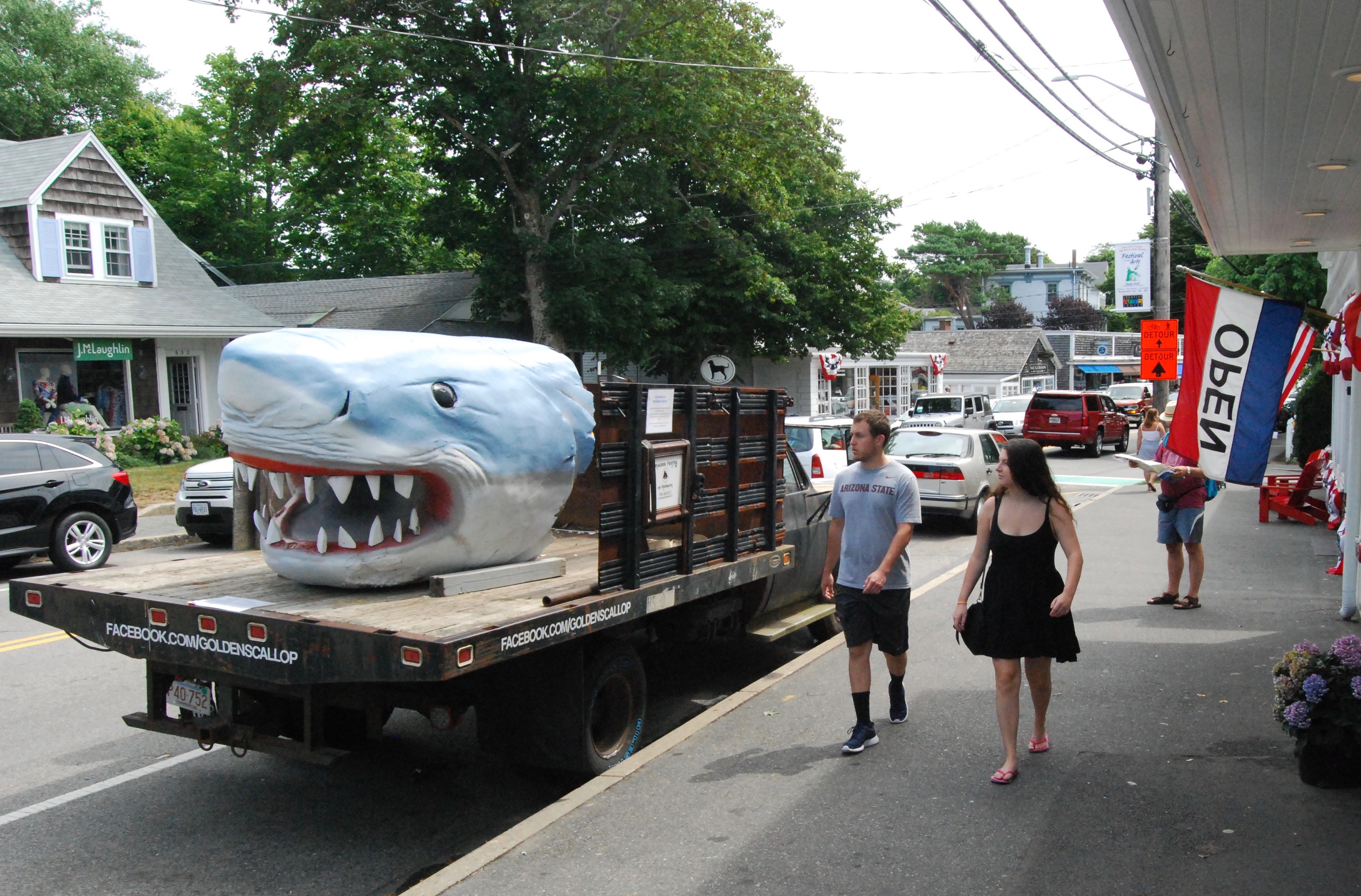 Today, every souvenir shop has shark plush toys and T-shirts. One local contractor hangs a giant foam shark from the back of his flatbed truck parked on the main drag. The new regional high school has made its mascot a great white shark, and the town organizes an annual event called “Sharks in the Park,” where businesses decorate the library’s lawn with wooden sharks.